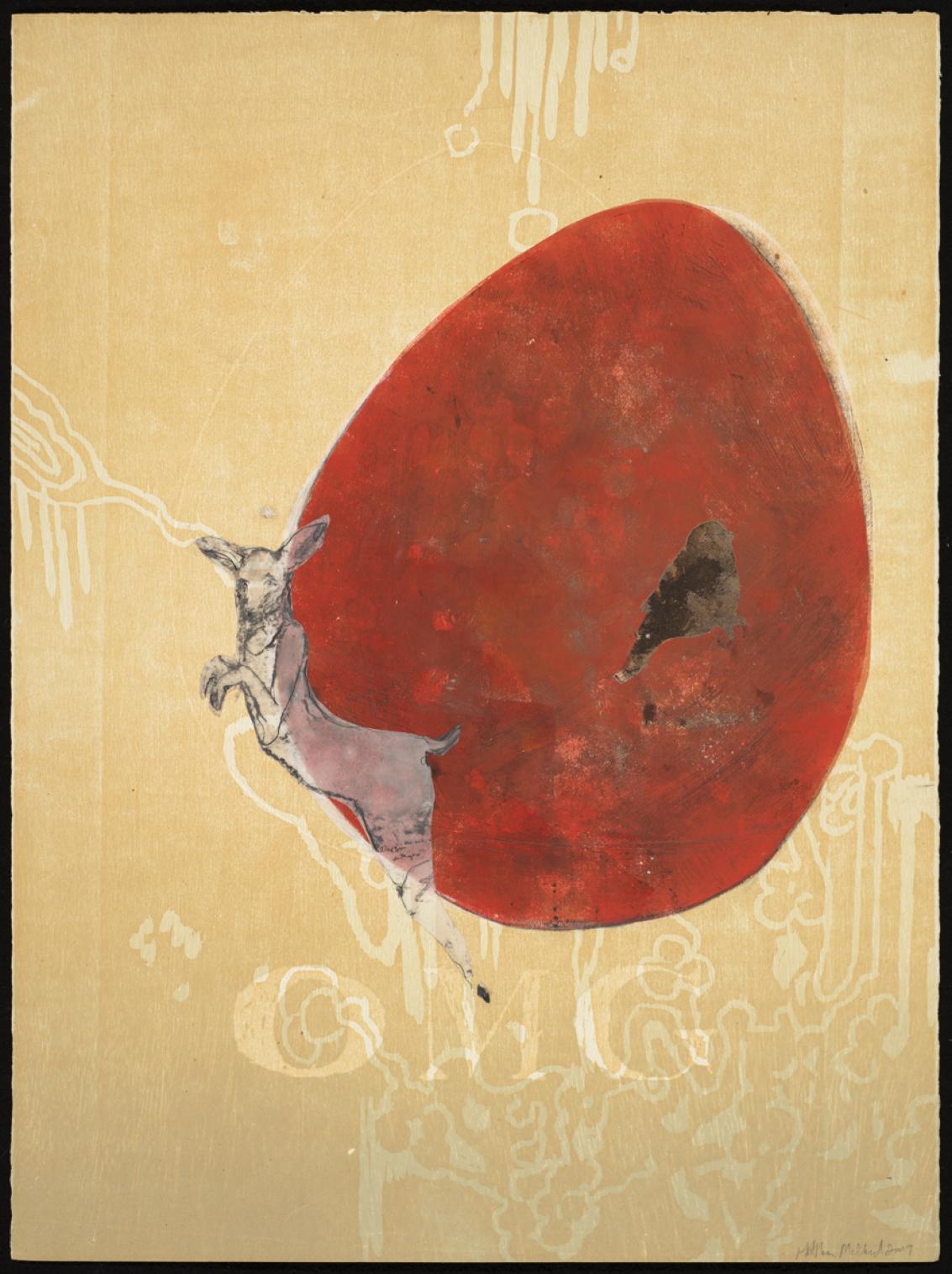 Woodcut, monoprint, drawing on vellum, collage element, on Fabiano paper