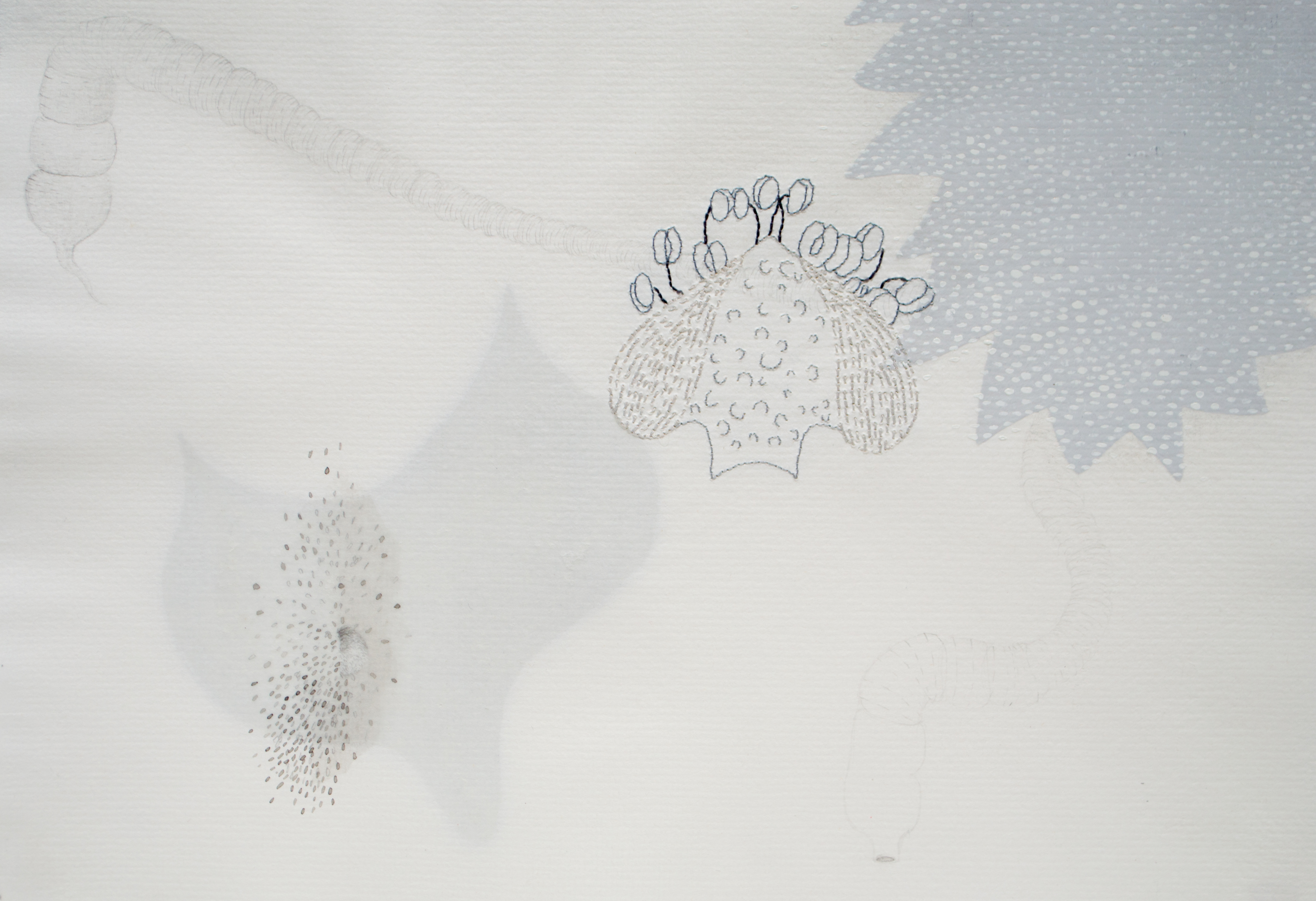 Graphite, ink, acrylic, adhesive, thread on losin paper